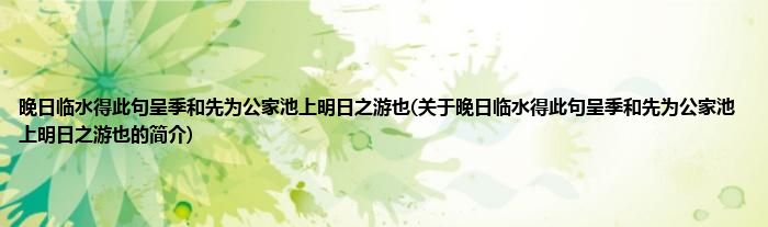 本文关于晚日临水得此句呈季和先为公家池上明日之游也的简介就讲解完毕,希望对大家有所帮助。