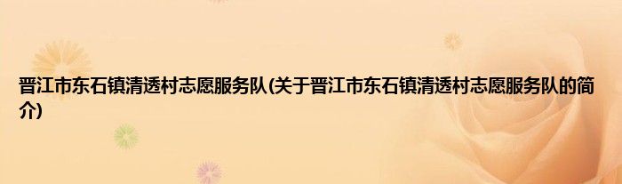 本文关于晋江市东石镇清透村志愿服务队的简介就讲解完毕,希望对大家有所帮助。