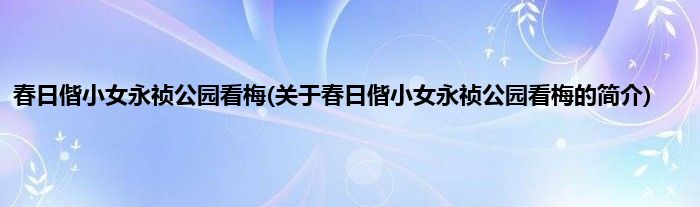 大家好,春日偕小女永祯公园看梅,关于春日偕小女永祯公园看梅的简介很多人还不知道,现在让我们一起来看看吧!