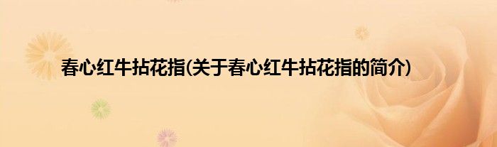 大家好,春心红牛拈花指,关于春心红牛拈花指的简介很多人还不知道,现在让我们一起来看看吧!