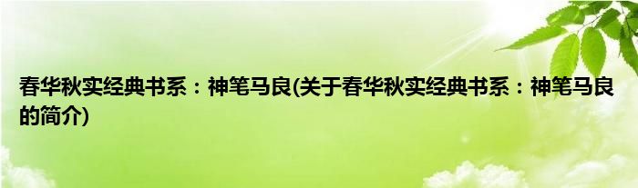 本文关于春华秋实经典书系:神笔马良的简介就讲解完毕,希望对大家有所帮助。