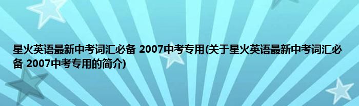 大家好,星火英语最新中考词汇必备 2007中考专用,关于星火英语最新中考词汇必备 2007中考专用的简介很多人还不知道,现在让我们一起来看看吧!
