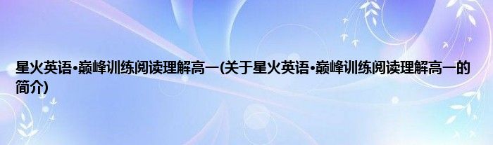 本文关于星火英语·巅峰训练阅读理解高一的简介就讲解完毕,希望对大家有所帮助。