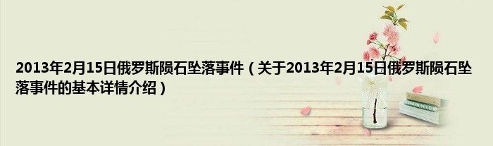 本文关于2013年2月15日俄罗斯陨石坠落事件的基本详情介绍就讲解完毕,希望对大家有所帮助。