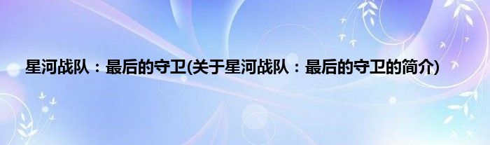 本文关于星河战队:最后的守卫的简介就讲解完毕,希望对大家有所帮助。