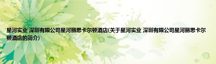 本文关于星河实业 深圳有限公司星河丽思卡尔顿酒店的简介就讲解完毕,希望对大家有所帮助。