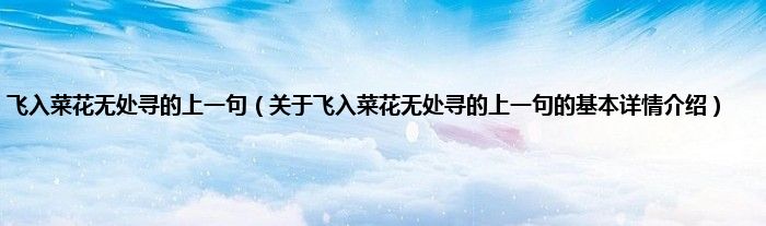 本文关于飞入菜花无处寻的上一句的基本详情介绍就讲解完毕,希望对大家有所帮助。