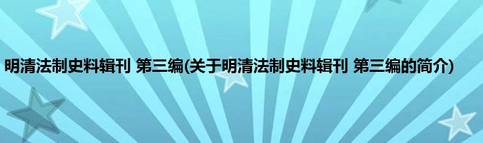 本文关于明清法制史料辑刊 第三编的简介就讲解完毕,希望对大家有所帮助。