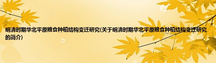 本文关于明清时期华北平原粮食种植结构变迁研究的简介就讲解完毕,希望对大家有所帮助。