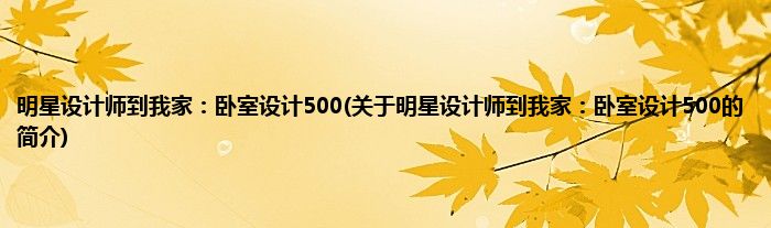 本文关于明星设计师到我家:卧室设计500的简介就讲解完毕,希望对大家有所帮助。