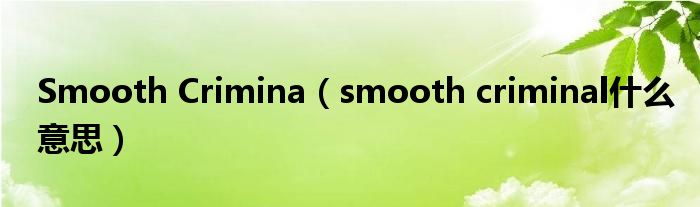大家好,精选小编来为大家解答以上问题。Smooth Crimina,smooth criminal什么意思很多人还不知道,现在让我们一起来看看吧!