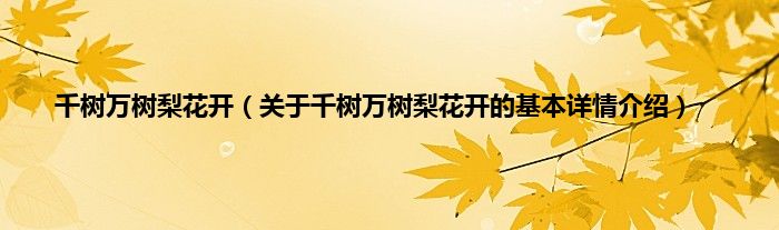 本文关于千树万树梨花开的基本详情介绍就讲解完毕,希望对大家有所帮助。