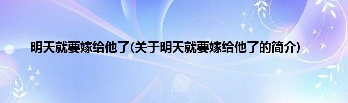 大家好,明天就要嫁给他了,关于明天就要嫁给他了的简介很多人还不知道,现在让我们一起来看看吧!