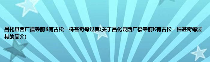 大家好,昌化县西广福寺前K有古松一株甚奇每过其,关于昌化县西广福寺前K有古松一株甚奇每过其的简介很多人还不知道,现在让我们一起来看看吧!