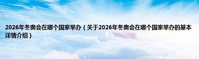本文关于2026年冬奥会在哪个国家举办的基本详情介绍就讲解完毕,希望对大家有所帮助。