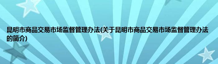 大家好,昆明市商品交易市场监督管理办法,关于昆明市商品交易市场监督管理办法的简介很多人还不知道,现在让我们一起来看看吧!