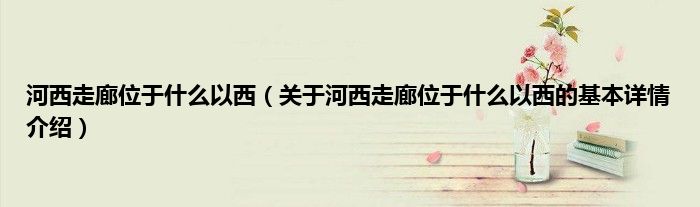 本文关于河西走廊位于什么以西的基本详情介绍就讲解完毕,希望对大家有所帮助。