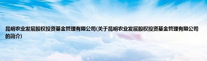 本文关于昆明农业发展股权投资基金管理有限公司的简介就讲解完毕,希望对大家有所帮助。