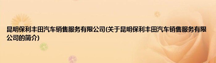 本文关于昆明保利丰田汽车销售服务有限公司的简介就讲解完毕,希望对大家有所帮助。