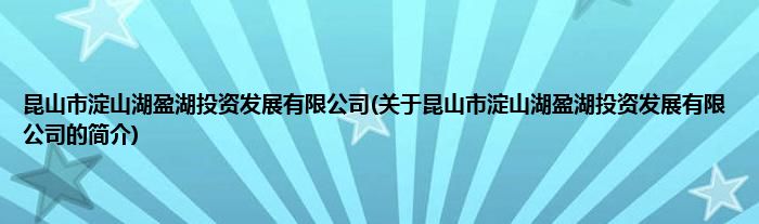 本文关于昆山市淀山湖盈湖投资发展有限公司的简介就讲解完毕,希望对大家有所帮助。