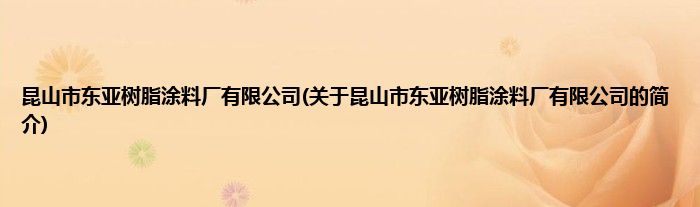 本文关于昆山市东亚树脂涂料厂有限公司的简介就讲解完毕,希望对大家有所帮助。