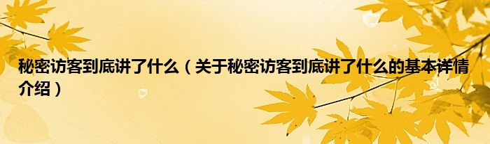 本文关于秘密访客到底讲了什么的基本详情介绍就讲解完毕,希望对大家有所帮助。