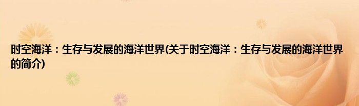 大家好,时空海洋:生存与发展的海洋世界,关于时空海洋:生存与发展的海洋世界的简介很多人还不知道,现在让我们一起来看看吧!