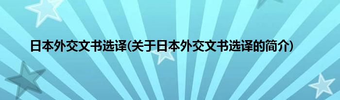 本文关于日本外交文书选译的简介就讲解完毕,希望对大家有所帮助。
