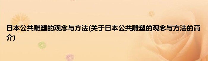 本文关于日本公共雕塑的观念与方法的简介就讲解完毕,希望对大家有所帮助。