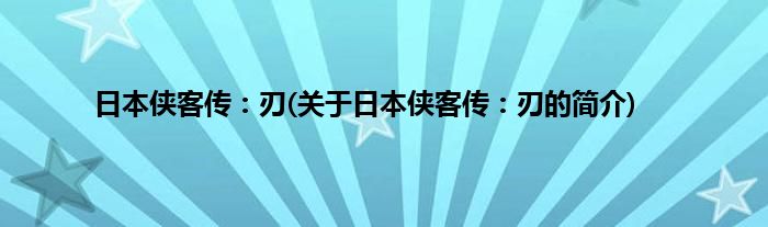 大家好,日本侠客传:刃,关于日本侠客传:刃的简介很多人还不知道,现在让我们一起来看看吧!