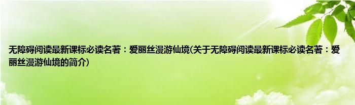 本文关于无障碍阅读最新课标必读名著:爱丽丝漫游仙境的简介就讲解完毕,希望对大家有所帮助。