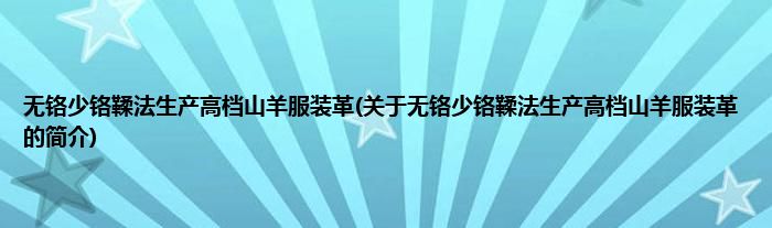本文关于无铬少铬鞣法生产高档山羊服装革的简介就讲解完毕,希望对大家有所帮助。