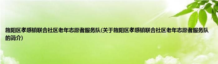 本文关于旌阳区孝感镇联合社区老年志愿者服务队的简介就讲解完毕,希望对大家有所帮助。