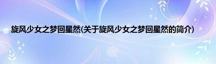 本文关于旋风少女之梦回星然的简介就讲解完毕,希望对大家有所帮助。