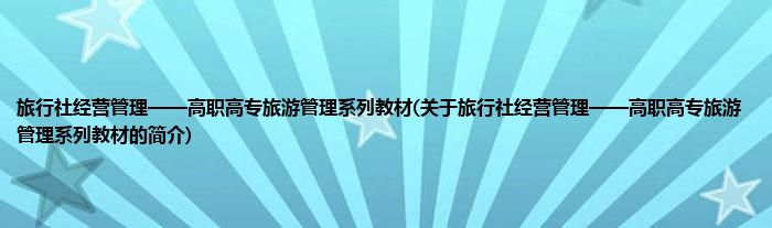 本文关于旅行社经营管理——高职高专旅游管理系列教材的简介就讲解完毕,希望对大家有所帮助。