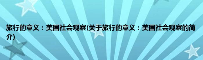 本文关于旅行的意义:美国社会观察的简介就讲解完毕,希望对大家有所帮助。