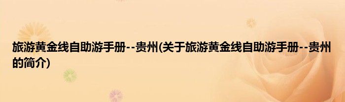 大家好,旅游黄金线自助游手册--贵州,关于旅游黄金线自助游手册--贵州的简介很多人还不知道,现在让我们一起来看看吧!