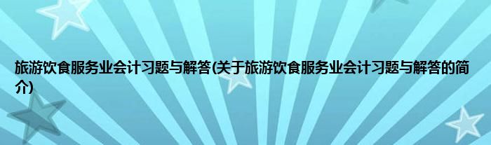 本文关于旅游饮食服务业会计习题与解答的简介就讲解完毕,希望对大家有所帮助。