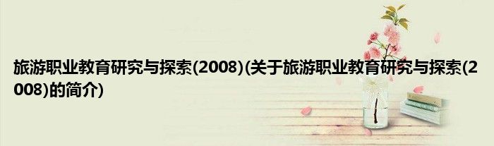 1、 《旅游职业教育研究与探索(2008)》是2008年10月旅游教育出版社出版的图书。