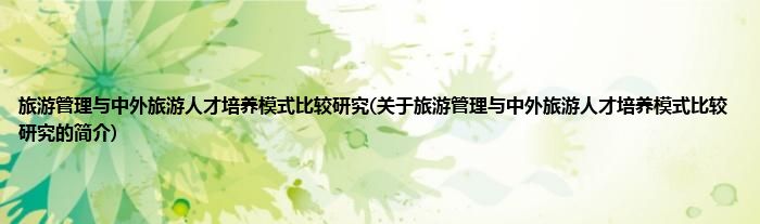 本文关于旅游管理与中外旅游人才培养模式比较研究的简介就讲解完毕,希望对大家有所帮助。