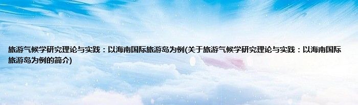 本文关于旅游气候学研究理论与实践:以海南国际旅游岛为例的简介就讲解完毕,希望对大家有所帮助。