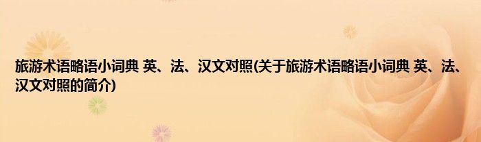 本文关于旅游术语略语小词典 英、法、汉文对照的简介就讲解完毕,希望对大家有所帮助。
