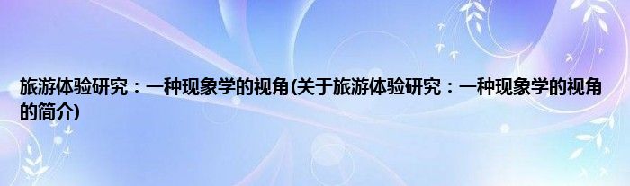 本文关于旅游体验研究:一种现象学的视角的简介就讲解完毕,希望对大家有所帮助。