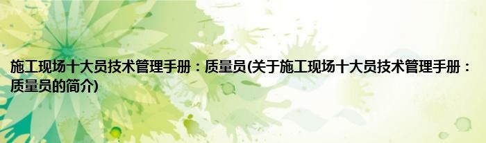大家好,施工现场十大员技术管理手册:质量员,关于施工现场十大员技术管理手册:质量员的简介很多人还不知道,现在让我们一起来看看吧!