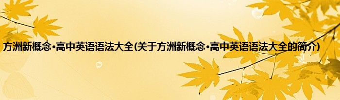 本文关于方洲新概念·高中英语语法大全的简介就讲解完毕,希望对大家有所帮助。