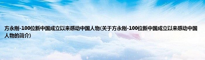 本文关于方永刚-100位新中国成立以来感动中国人物的简介就讲解完毕,希望对大家有所帮助。