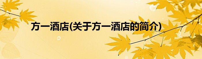 本文关于方一酒店的简介就讲解完毕,希望对大家有所帮助。