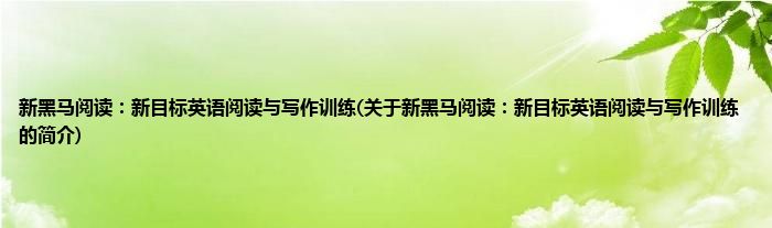大家好,新黑马阅读:新目标英语阅读与写作训练,关于新黑马阅读:新目标英语阅读与写作训练的简介很多人还不知道,现在让我们一起来看看吧!