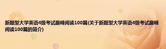 本文关于新题型大学英语4级考试巅峰阅读100篇的简介就讲解完毕,希望对大家有所帮助。