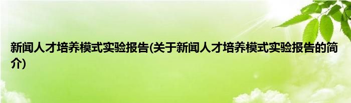 本文关于新闻人才培养模式实验报告的简介就讲解完毕,希望对大家有所帮助。
